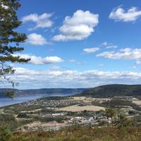 Nesten midt i bildet, bak Nedre Lindum sees togtunnelen som Bane Nor bygger fra Kobbervikdalen til Drammen i 2020.