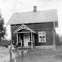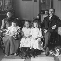 Glassplaten er skannet og behandlet av Fotohuset, Drammen. Lok.fører Andreas Nilsen Skarra, Langum f. 10.04.1859 Vestfossen d. 1935 på Langum Fru Julie Regine Sophie, f Clausen f. 13.09.1860, d 15.05.1945. Billedet er tatt i stuen på Langum. Bildet står i Skogerboka.