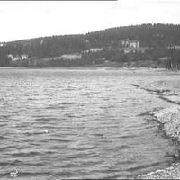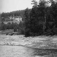 Konnerudkollen Sanatorium som senere endret navn til Konnerudkollen Turisthotell. Stordammen i forgrunnen og Fosserud til venstre for sanatoriet.