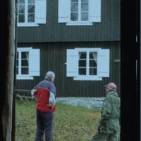 Tekst: Per Runar Thoresen August 1997:Under svært uheldige omstendigheter oppstod det brann ved Kjøkkenovnen. Dugnadsgjengen som var utomhus oppdaget etter hvert branntilløpet og etter iherdig innsats fikk man slokket brannen, men innvendig var det betydelige brannskader i begge etasjer. Dugnadsgjengen drev med restaurering og ble dermed ikke arbeidsledige på en stund. På bildet: Per Hansen og Øyvind Pedersen -