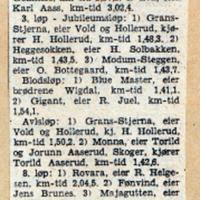 Flere Skogerhester var med her : I 1. løp ble Majagutten med kusk og eier Arne Finsrud nr. 3 I Blodsløpet ble Gigant med kusk og eier Ragnar Juel nr. 2 I Avlsløpet ble Monna nr 2, kusk og eier Torill Aaserud I 7. løp vant Monna og ble raskeste norske hest der med kmtid 1.41.2, kusk James Aaserud I 8. løp ble Majagutten, kusk og eier Arne Finsrud nr. 3 Se resultatlista fra DT