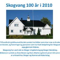 Samling av bilder gjort til Skogvangs 100-årsjubileum i 2010. Samlingen er foretatt av blant annet Arve Hoven og Hans Myhre. Arve brant bildefilene til en CD som nå er i Skoger og Konnerud historielags arkiv. Orginalt filnavn sier litt om motivet og anledningen.