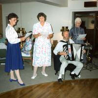 Sangerfest i Arbo Selskapslokaler ? Ukjent fra Svelvik, Jorunn Larsen, Einar Borgan og Arnlaug Ebbestad.