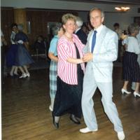 Sangkorfest i Arbo Selskapslokaler ?. Sigmund Furustad svinger seg på dansegulvet med ????.