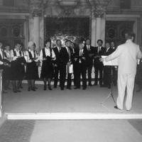 Sangerfest i Arbo selskapslokaler? Ukjent og Per Hellerud (bøssemaker).