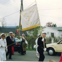 17. mai. Under gangbrua ved bl.a. Løkkesvingen. Bildet tatt på 1980-tallet.