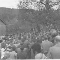 Musikorpset kom på en lastebil opp til Stubberud for å spille inn 17. mai. Nils Blixrud, Age Ravn- Hansen, Oddvar Warhus, Thorbjørn Tollefsen, Egil Kristensen, Finn Andresen, Kåre Gullhaugen, Helge Bliksrud og med ryggen til fotograffen : Egil Torgersen I bakgrunnen huset til Oscar Stubberud
