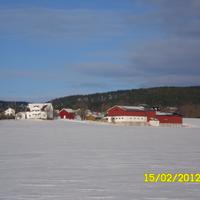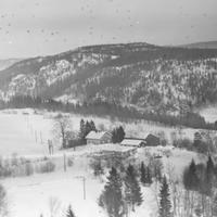 I forgrunnen Gunnerud midtre gnr. 31 bnr. 1 (Brattaas). I bakgrunnen Gjerpen søndre, gnr. 29 bnr. 2 (Juelsen). Dalen nedenfor, midt i bildet, er Kobbervikdalen. Helt i bakgrunnen ses åsen mot Solum og Nordbykollen.