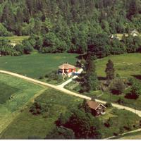 Solstad i Aaserudkroken. Her bodde Ingrid og Rudolf Martinsen. Solhøy hvor Arne Kaspersen med familie bodde, ligger ovenfor. Redskapshuset og revefarmen til Vestre Aaserud ligger nederst i bildet Tekst: Torill Juel