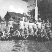 Foran fra v.: Torbjørn Bjørlo f. 1940. Arild Boman f. 1940, Arne Høiås (1938-1991) Kåre Hansenf1939, Arne Melby f.1940, Harald Røed f. 1940, Inge Hansen F.1940, Kjell Thomassen (1940-1975), Hans Myhre f. 1939, Hans Haveraaen f.1939, Ingar Danielsen f.1939, Olaf Tørvi (1940-2003)) og Håkon Lindberg f.1940, Bak fra v.: Torun ? . Bergljot Olsenf. 1939, Ingjerd Johansen f. 1938, Anne Berit Johansenf.1940, Gerd Thoresen f. 1940, Bjørg Johansen f1940, Torild Johnsrud f 1941, Liv Hindhamar f.1939,Turid Lie f.1940 og Inger Mortensen f. 1939, Bakerst: lærer Andreas Ertzeid (1905-1979) Elevene gikk sammen i 4. og 5. klasse da dette bildet ble tatt.