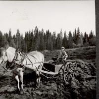 Sigurd Stubberud kjører ut møkk i våronna i 1954