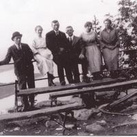 • Fra v. Martin Haugen . Gulbjørg gift med Johan Halden, Johan Halden . Olav Echholt . Klara Echholt gift med Joseph Echholt . Marta Echholt. Bildet er tatt på en tur fra Konnerud til Kongens utsikt. Reisen var lang. Tog fra Drammen til Lierbyen, så videre med toget til Svangstrand ( Lierbanen ). Båt til Sundvollen og kanskje hesteskyss derfra til Kongenss utsikt. Klarte de denne turen på en dag ? Red. anm.