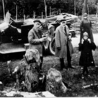 Første bil på Konnerud. Fra v. ukjent, Victor Hoff, Liten pike,ukjent, ukjent til h. Asta Hoff
