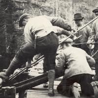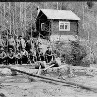Fløtegjeng ved Majordammen. Blant "gutta" her så ser en at det er med en dame.