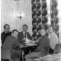 • Et forberedende møte før Ski-NM 1978. Bildet tatt på klubbhuset: Fra Venstre : Bjørn Jonassen (nestformann i Hovedkomiteen), Arne Kildebo(med ryggen mot fotograf- Teknisk delegert), Olaf Stenestø fra Berger (formann i Buskerud Skikrets , Hans T.Olsen (Skioppmann og Rennleder) og Geirr Kihle (formann i hovedkomiteen før NM 1978)