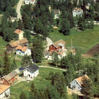 • Da detrte bildet ble tatt, begynte Hauanveien i krysset ved Bekkedalen (krysset rett over taket på det gule huset , nå (2013) Nyborgveien 9 gnr,bnr. 80/368). I bakgrunn ser vi Bekkedalsveien. Gården midt på bildet til høyre for veien er Nyborgveien 4a gnr/bnr. 80/38. Gården på motsatt side er Halden, Nyborgveien 5 (80/709) Det brune huset øverst tilø venstre er Vargveien 3 (80/156.) Her bodde Kristensedn med barna Egil, Arne, Inger (gift Fjellheim) og Bjørg.