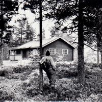 Harald Aabel ved Røde Kors hytta på Bolsteinåsen på Østakauen, over mot Svelvik, 1970 Se Drammens og Oplands Turistforenings årbok 1972 -