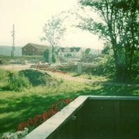 Gården til Anders Grimsrud. Lå der hvor nå den nye motorveien går like ved grensen mellom Skoger (Drammen) og Sande.Nabo til Skoger stasjon. Arbeidet med motorveien er nettopp startet.