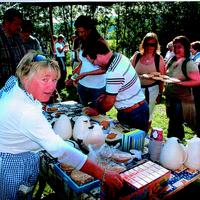 Kulturdagen på Skjeldrum samlet i år nærmer 200 personer. Her fra salgsdisken til Skoger Bygdekvinnelag, hvr det bl.a. var lefser,kaffe og saft å få kjøp av Vigdis Skaug.