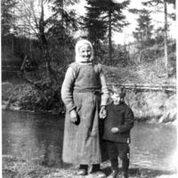 Bildet viser fru Bjørnerud og hennes dattersønn Gunnar. Mor til Gunnar, Margit, døde i ung alder og etterlot seg tre små barn. Mormoren tok seg av den eldste som var Gunnar. Far til Gunnar var en svenske som het Andrerson. Min far (skriver Anne Berit Johansen), Emil Johansen giftet seg med Margit i 1923 ?, og de fikk to barn, Trygve og Åse. Emil var enkemann i 15 år før han giftet seg igjen med Anette (f02.20.1901 - døde 1971) og fikk Anne Berit.