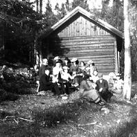 Utenfor hytta ved Øytjern. Hytta til Braathen.