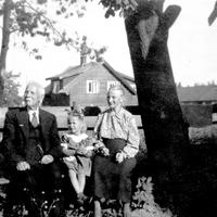 Kittil Lie og Jorunn Stubberud ( datter til Henry Stubberud ) , Berte Johanne Stubberud f. Lie Huset i bakgrunnen er Halgeir Treholt sitt.