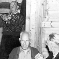 Alfred Stubberud med sin hardingfele. Ragnar Halden helt til høyre.