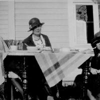 Fra v. Hanna Hansen, Anne Christensen og Charm. Thollefsen. De to sise er fra Drammen og er på besøk i Hasselbakken