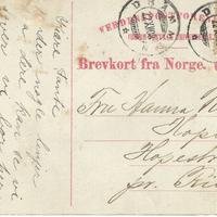 Bildet er antagelig tatt fra "Sletta" i Konnerudkollen Skibakke. på bildekanten helt til venstre ser vi gården Lutevoll hvor alle nygninger nå er revet. Midt på bildet til venstre for veien ser vi gården Hornvoll som også er revet. Langt borte til høyre på bildet ser vi Sprensgrud eller "Bygningen" som er en av Konnerud's eldste bygnninger fra rundt 1740-årene. Den var i en periode adm.bygg for Konnerduverket. Det er stiftelsen Konnerudverket som idag disponerer denne eiendommen. Postkortet er sendt i julen 1908 til mottaker i Risør. (Tekstsiden av kortet ser du på alternativt bilde)