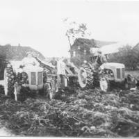 Potetopptaking på N. Skjeldrum . Jørgen Skjeldrum, Gunvor Hyllseth og Kollbjørn Hyllseth m/ Ferguson troktor og automatisk potetopptaker