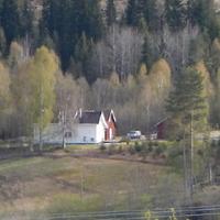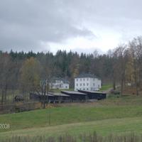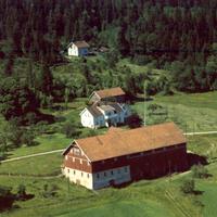 Det hvite huset midt på fotoet er Løkka. Foran til h.: Bråthen
