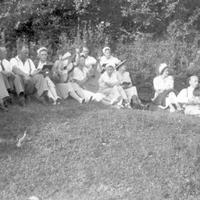 Fra v.: u - Harald Larsen - Berta Antonsen - Ruth Svendsrud - Kate Aasheim - Solveig Svendsrud - Gunnvor Svendsrud - Ukjent - Ella Pedersen - Hagbert Aasheim