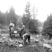 Bjarne Borgen fra Sande ( fetter av Anton Gravdal ) Karl Bråten med to hester Vei skal bygges.
