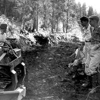 Brødrene Andresen innspiserer veibygging. Buldozeren til LOVICO