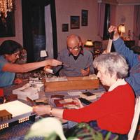 Fotokomiteen i arbeid, her 16. mars 1988 hjemme hos Anne-Lise Møller Nilsen. Fra venstre: Åse Tandberg, Toll Tollum, Anne-Lise Møller Nilsen og Helge Furuvold.