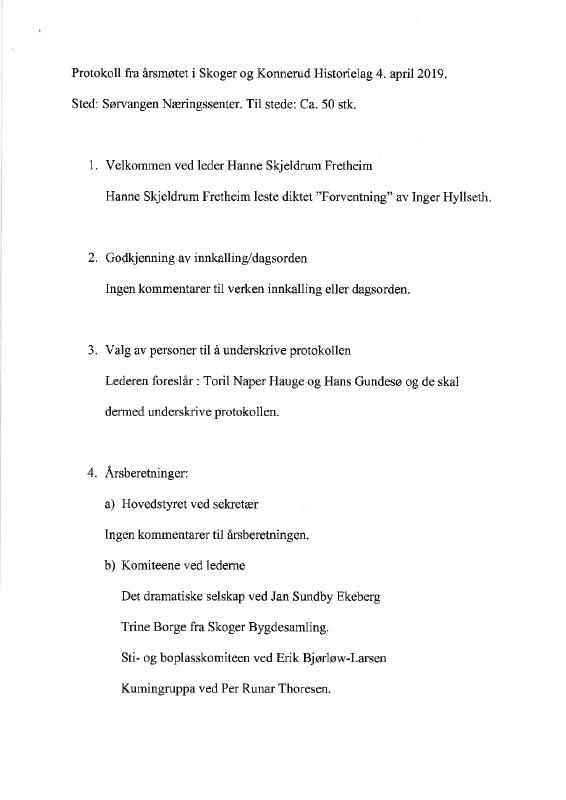 “Årsmøteprotokoll 2019 signert,” Skoger og Konnerud historielags bildesamling, besøkt 27. februar 2026, https://www.skhist.nettsidetesting.no/items/show/1102.