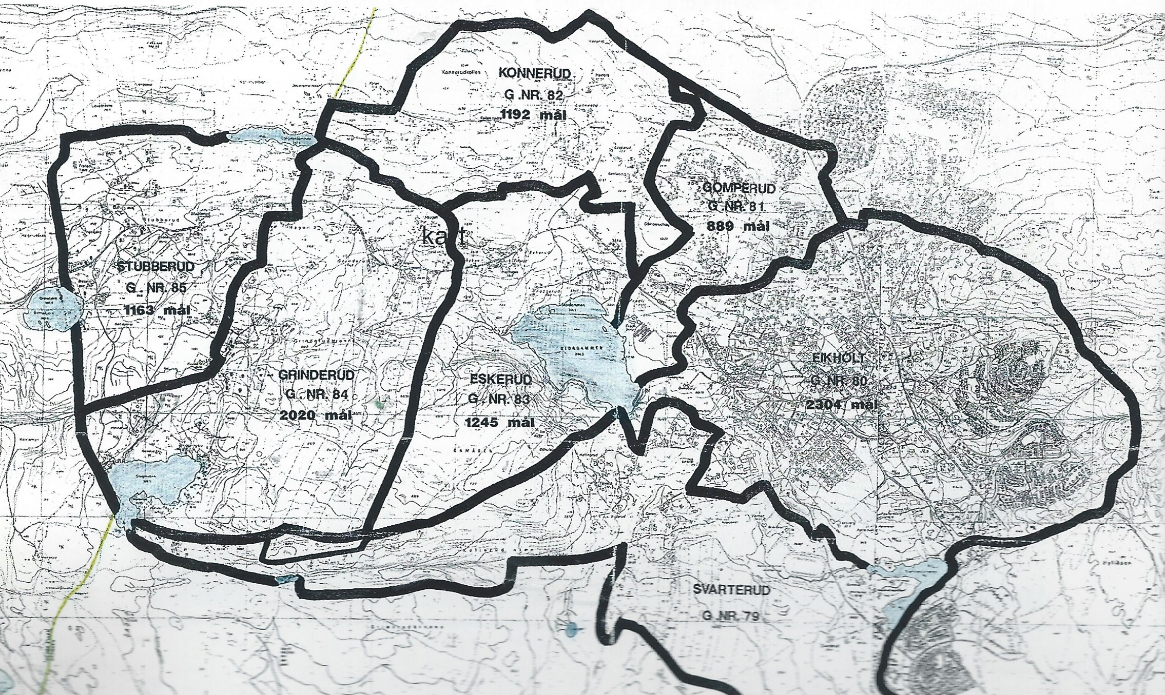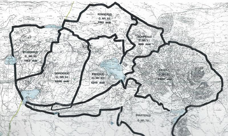 Før Grevens auksjon over Konnerudverket i 1778 bestod Konnerud av 5 - 6 gårder De 5 gårdene var, Grinderud,Eskerud, Konnerud, Gomperud og den største Eikholt. Stubberud kom til nesten 100 år senere ved en menighetsregulering med Nedre Eiker, Svarterud var for en stor del Skoger.. Tekst: Per Runar Thoresen