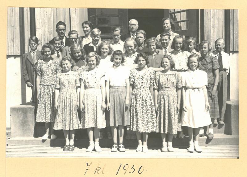 Bak fra V: Lærer Olaf Haveraaen, Lærer Anna Eckholt, Skolestyrer Lars K. Heggen, Lærer Nelly Eek 3.rekke: Knut kristensen, Rudi Andresen. Ulf Eriksen, Jens Dahlby, Bjørn Stubberud, Arne Emberland, Tore Pedersen, Egil Åsheim, Eilert Jørgensen. 2. rekke: Astrid Kristensen, Frida Evensen, Torill?????, Karin Bråthen, Inger kristensen, Kari Kristiansen, Kari Halden. 1. rekke; Gunvor Halvorsen.Lillian Antonsen, Ragnhild Lien, Åse Kristensen, Kari Henriksen, Liv Helland