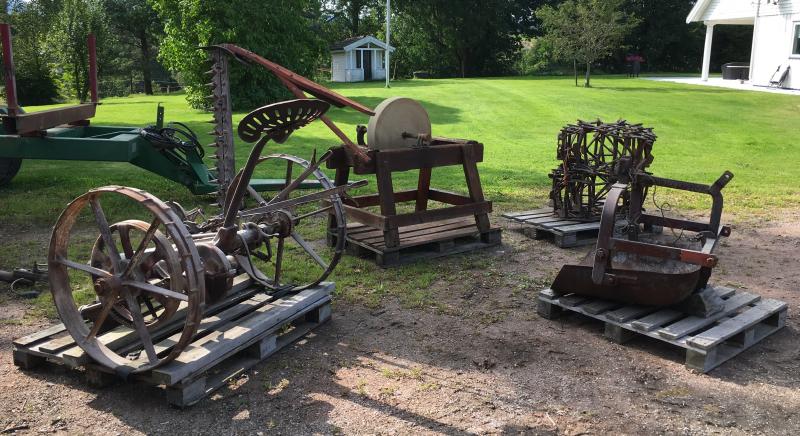 Denne slåmaskinen brukte Anders og Alf Juel, da som hestemaskin på 1930 tallet.
