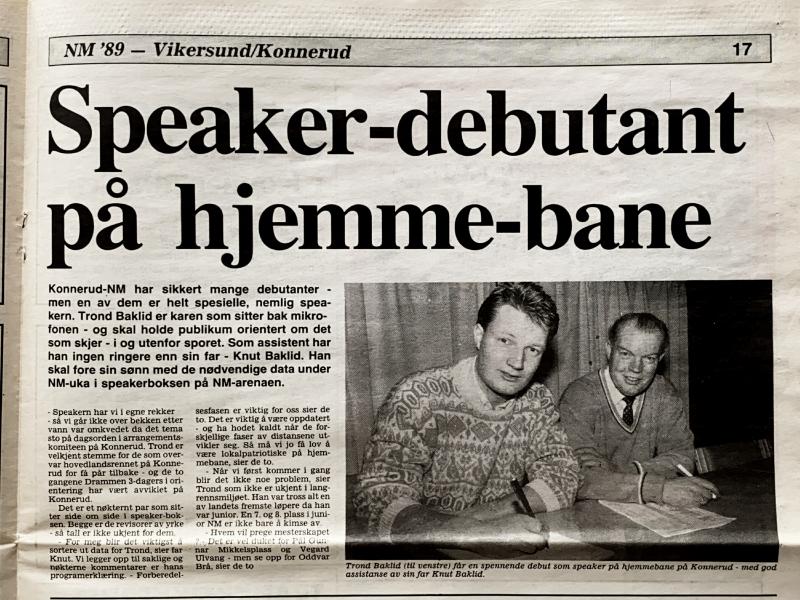 Speaker- debutant Trond Baklid får en spennende debut på hjemmebane på Konnerud. På bildet sammen med sin far Knut Baklid