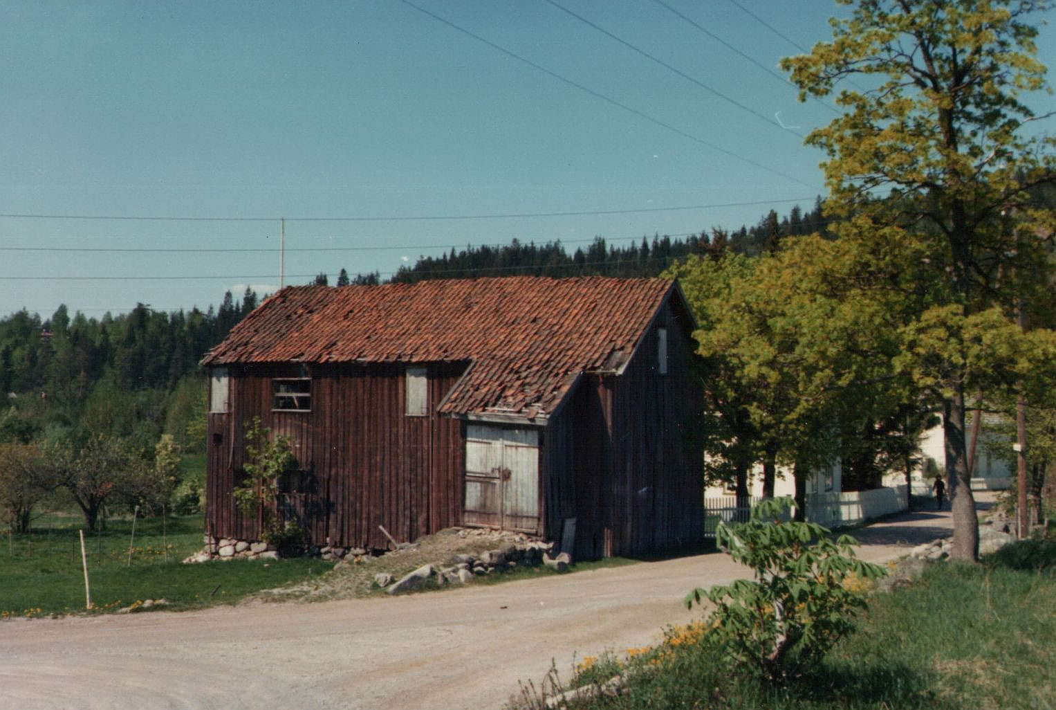 Bildet er fra Karin Pihls samling i Drammen Byarkiv. Gården lå i Grubegt. 23. Nordmo på Konnerud. Her bodde før/etter krigen. Martin Knutsen (f.1862 - 1951) kona Marie Martine Knutsen (død 1944) og datteren Helene Knutsen ( 1895-1985).Familien kom fra Viulsrud i Skoger og kalte seg den gang Viulsrud. Helene var enslig hjemmeværende på Viulsrud og hadde 6 søsken.Helene fulgte med foreldrene til Konnerud i 1936. På det lille småbruket var det kuer, høns og det som ble dyrket på småbruk etter krigen.Helene var en arbeidsmaur med grønnsaker, poteter, blomster osv. og stod med "rumpa i været" bestandig som naboene sa.Innkjøringen til låven lå midt i krysset Gomperudgt. / Grubegt.og innenfor dørene stod det en stor treskemaskin som flere naboer tresket på. I den siste tiden benyttet byggmester Roar Hagen låven som lagerplass.Låven ble antagelig revet på slutten av 1980-tallet. Våningshuset er restaurert og deler av tomten er skilt ut til ny bebyggelse. .