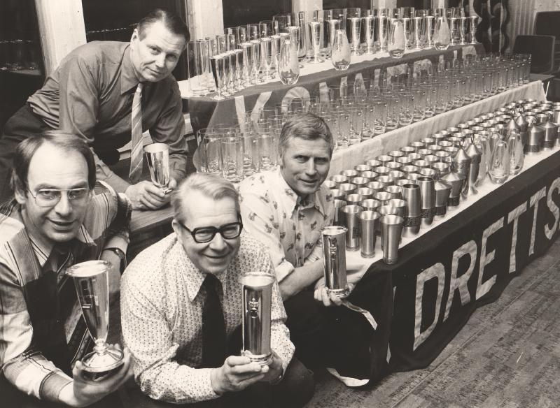 Bildet : Premiesamlingen til Ski NM 1978 på Konnerud. Foran fra Venstre; Bjørn Jonassen, Erling Lindseth og Hans Th.Olsen, Bak: Premiebas Karl Kubar.