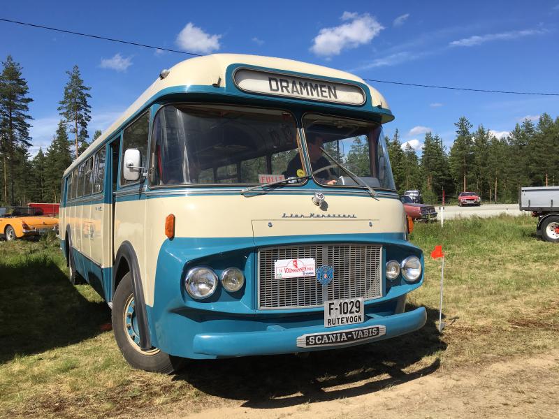Denne bussen, med nummer F-1029 en Scania Vabis B 55 1962 modell er restaurert av Drammen og Omegn Busshistoriske forening, som leier plass til den på Burud hos Motorhistorisk Klubb avdeling Drammen. Bildet er tatt på Veteranutstilling på Magnor 25, juni 2016. Helling-bussen gikk i rute Drammen - Skoger og Drammen - Konnerud i 1950 - 1960.
