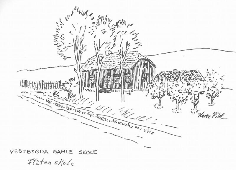 Flåten skole, Skoger Flåtan VestbygdaOpprinnelig fotograf: Tegning av Karin PihlKlausul: ingen