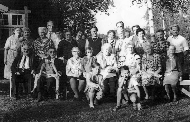 V foran: Olaf Lie, Kristian Fossen m/Hilde Bråthen, Anna Tveten, Turid Bråthen, Agnes Svendsen, Elna Stubberud, Nelly Sundsby (søster til fru Johanson) 2. rad: Sigride Pedersen, Sigrid Lie, Karen Gulbrandsen, Kåre Arntsen, Eli Treholt, Emilie Bråthen, Esther Grinderud, Ella Arntsen, Hilma Hansen, Hilma Fosse, Trygve Andreassen m/frue, Inger bråthen, Anna Solbjørg, Petter Bråthen Helt i front: Solveig og Hans Kristian Arntsen