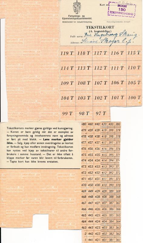 “Rasjoneringskort for tekstiler,” Skoger og Konnerud historielags bildesamling, besøkt 26. februar 2026, https://www.skhist.nettsidetesting.no/items/show/226.