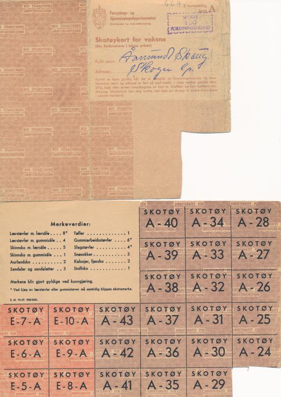 “Rasjoneringskort for skotøy,” Skoger og Konnerud historielags bildesamling, besøkt 26. februar 2026, https://www.skhist.nettsidetesting.no/items/show/227.