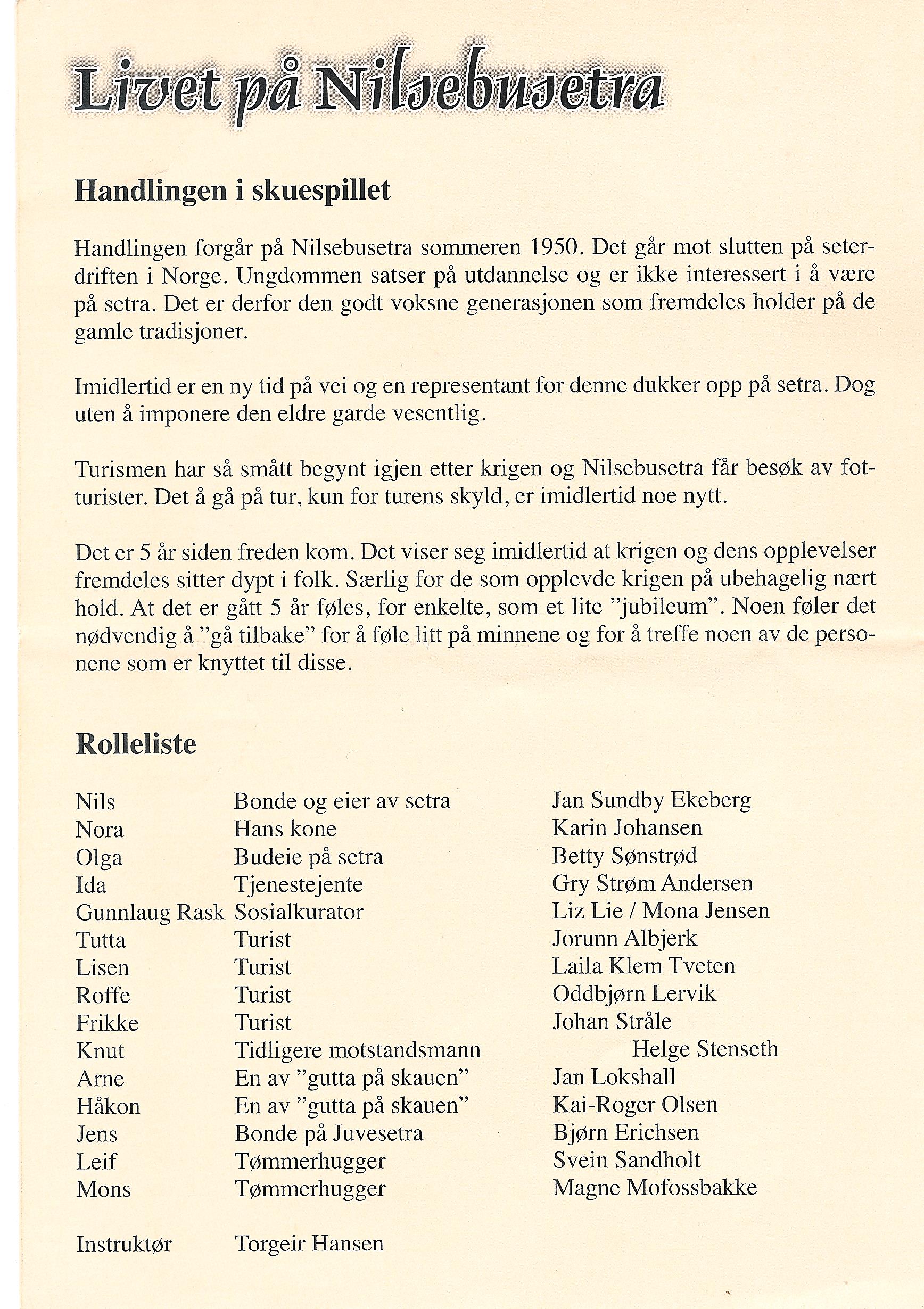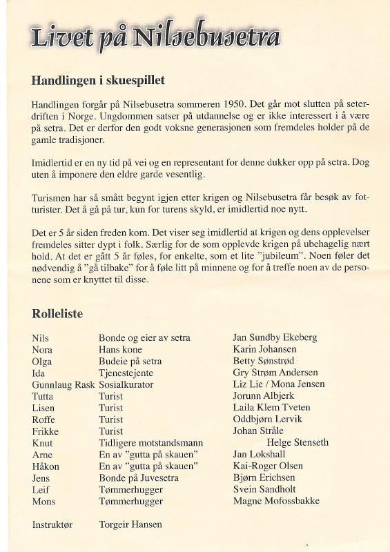 Talen ved bautaen ble holdt av HV-kaptein Andreas Develin. På Rønnehue ble skuespillet "Spillet om Nilsebusetra" fremført.
