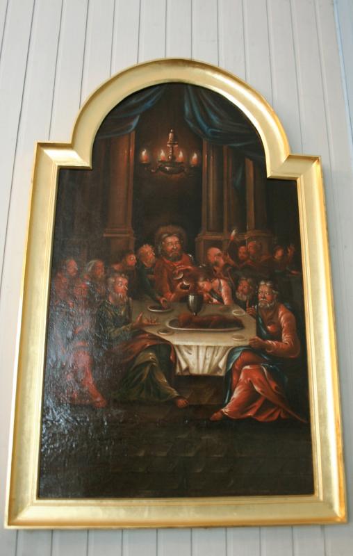 Bildet er hentet fra Konnerud kirkes jubileumsbok, 150 år. Altertavlen fra Konnerud gamle kirke. Dette alterbildet mener man stammer fra 1777. Det ble benyttet i kirken anno 1858, men vakte stor harme. Det ble ikke erstattet før i 1915. Etter en anonym tilværelse i gravkapellet havnet det igjen tilbake i gamlekirken - i 1988. Det ble nyrestaurert og henger nå bak prekestolen. (Foto: Ivar Vik).