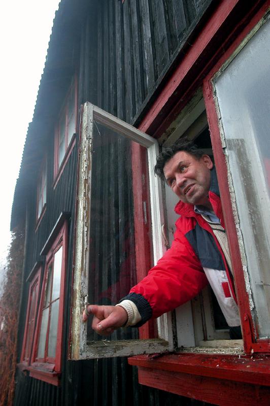 Knut Lyche i et av vinduene i det gamle huset. se. tekst bilde 2654.